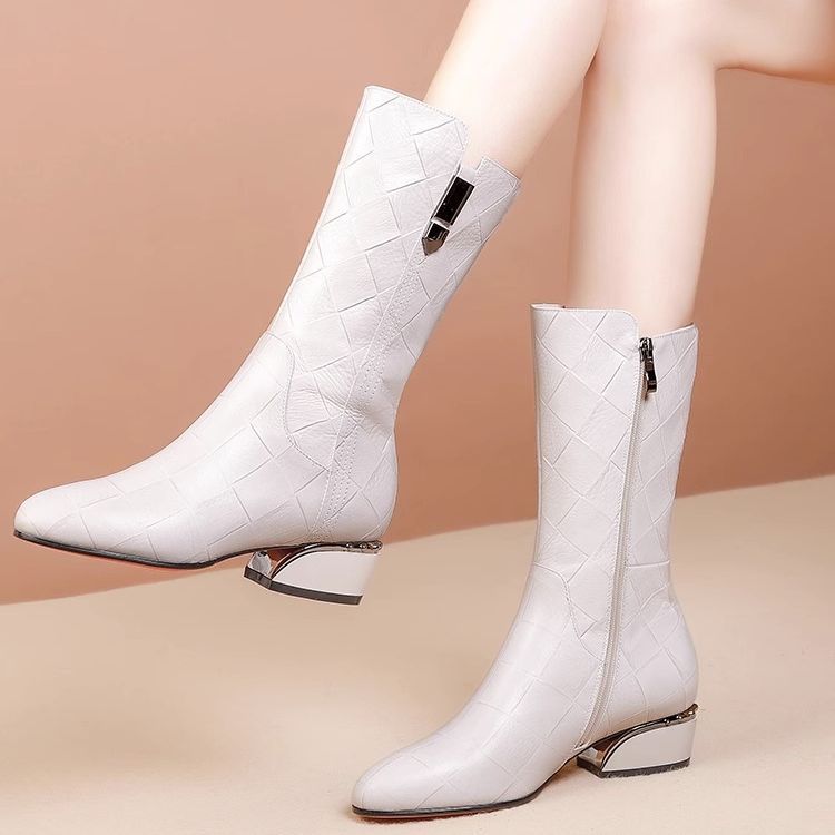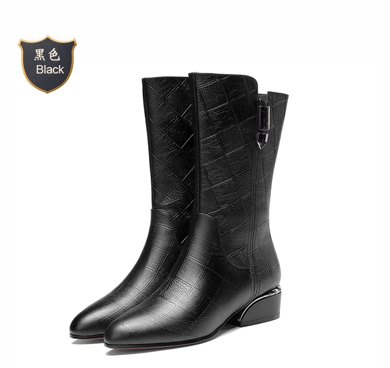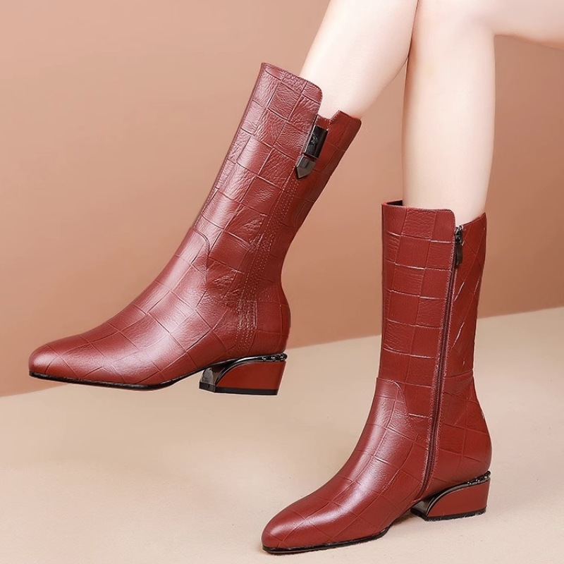 2025 New Autumn And Winter Boots Children Thick Heeled Boots Soft Leather Women's Shoes Winter HZ0115