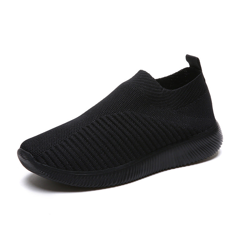 2025 New Fly Weaving Shallow Mouth Low Help Light And Breathable One-Foot Pedal Round Head Large-Size Leisure Flat-Bottomed Sneakers HZ0115