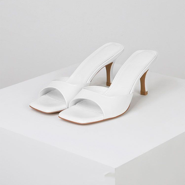 2025 Summer New Large Square Head High Heels Fashion Thin Heel Cool Drag Wearing A Word And A Half Slippers HZ0115