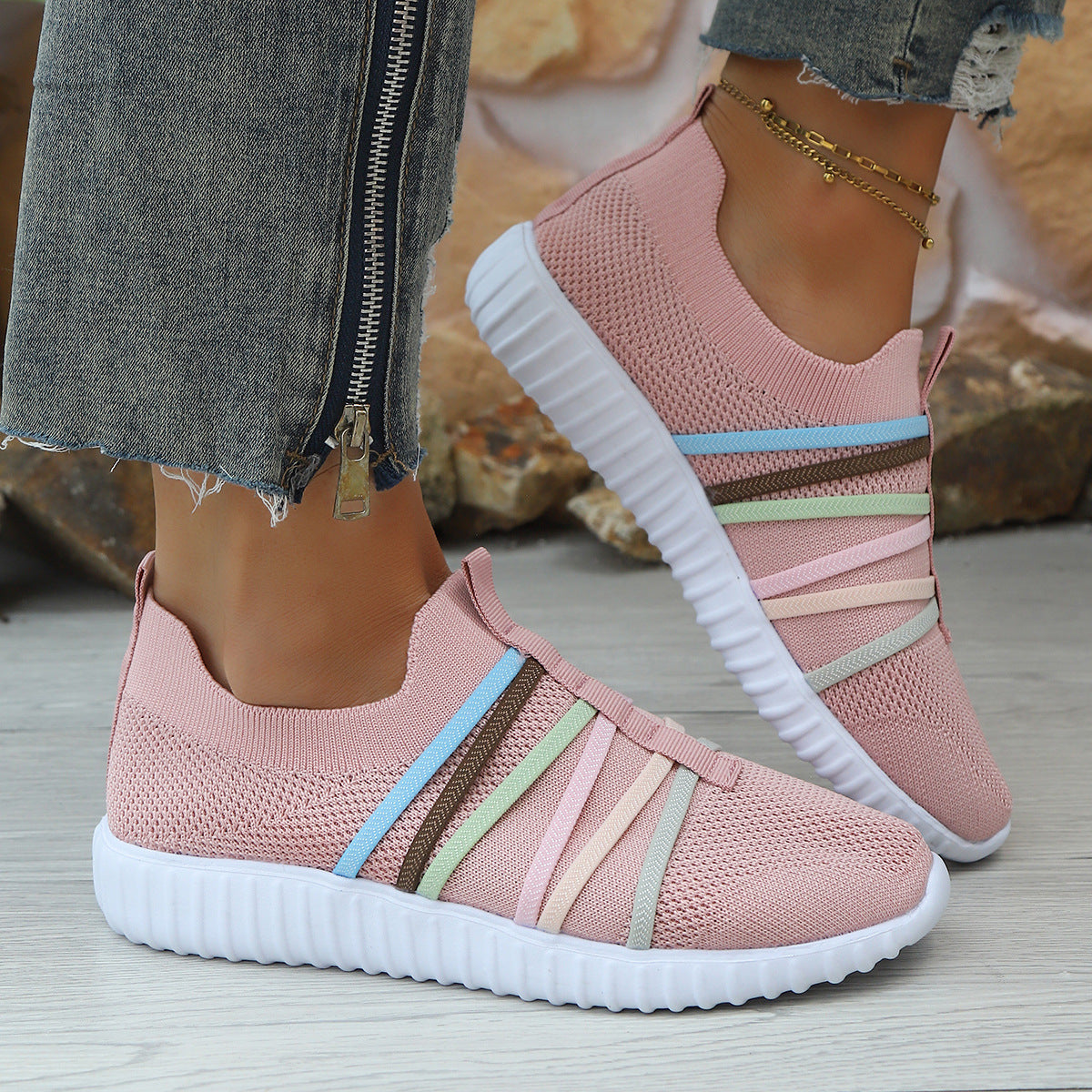 2025 Women's Shoes Summer New Flying Shoes Large-Size Leisure Single Shoes Light Pedal Sneakers HZ0115