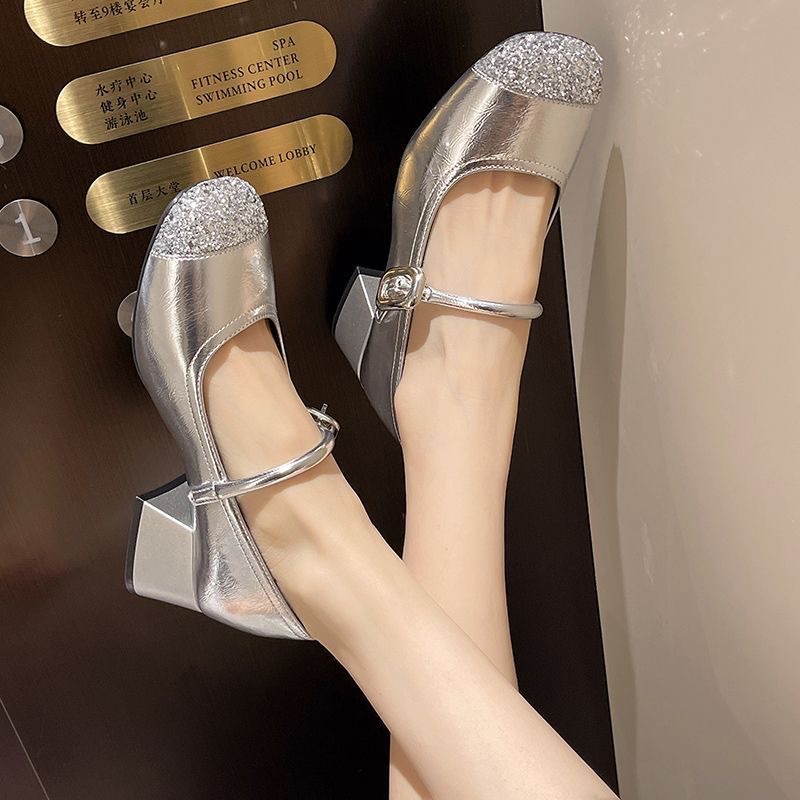 High-End Casual High-Retro French Single-Shoe Small Scented Silver Lily One-Word Temperament Light-Mouthed Mary Jane Shoes HZ0115
