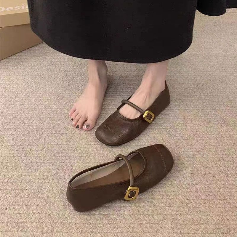 Korean Fairy Wind Word-Type Buckle With Lazy Shoes 2025 Net Red Fried Street High Value Light Mouth Anti-Slip Single Shoes HZ0115
