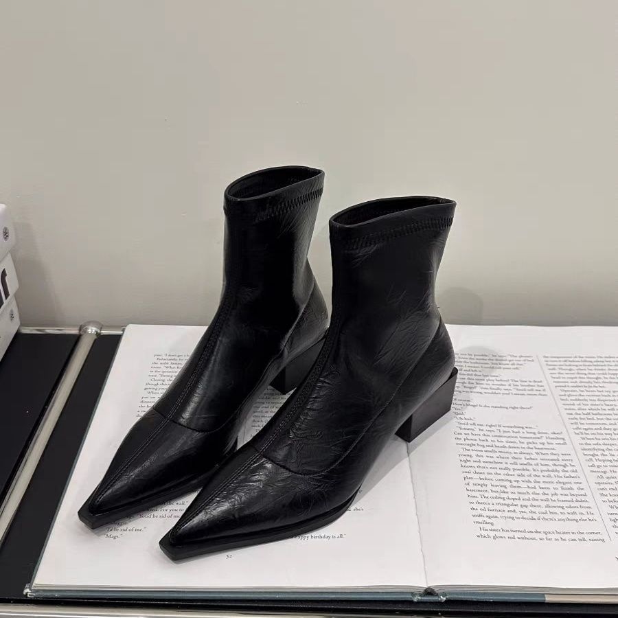 Korean Small Bare Boots Brown Pointed Short Boots Women's Shoes 2025 New Fashion With Thick And Thin Boots HZ0115