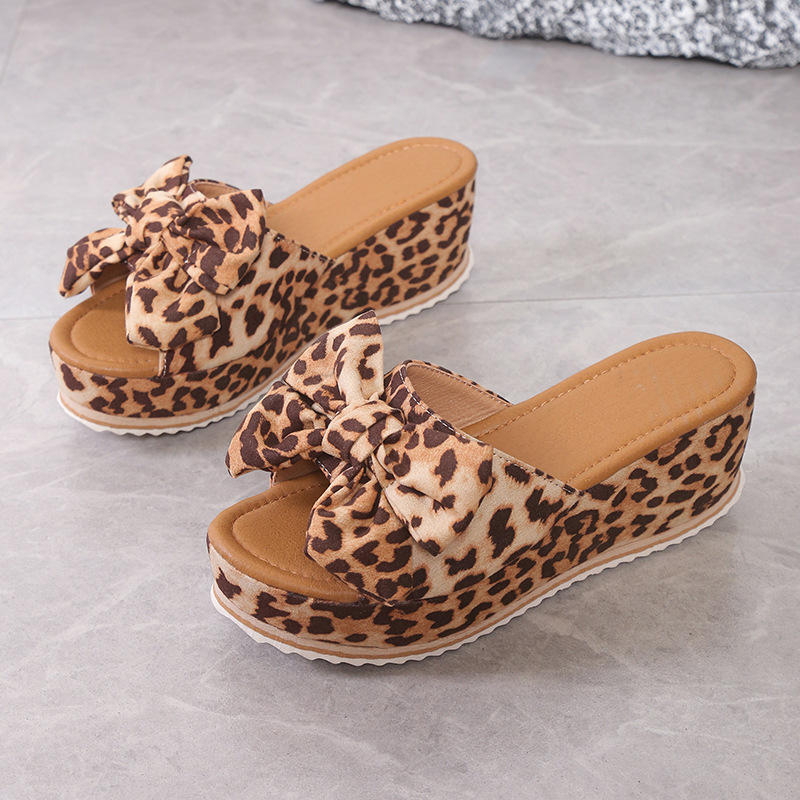 Large-Size Bow Cold Slippers Women 2025 Summer New Comfortable Loose Cake Thick-Bottomed Slippers Batch HZ0115
