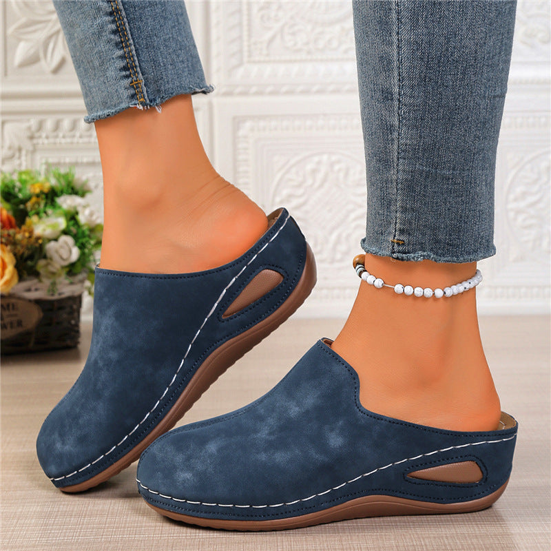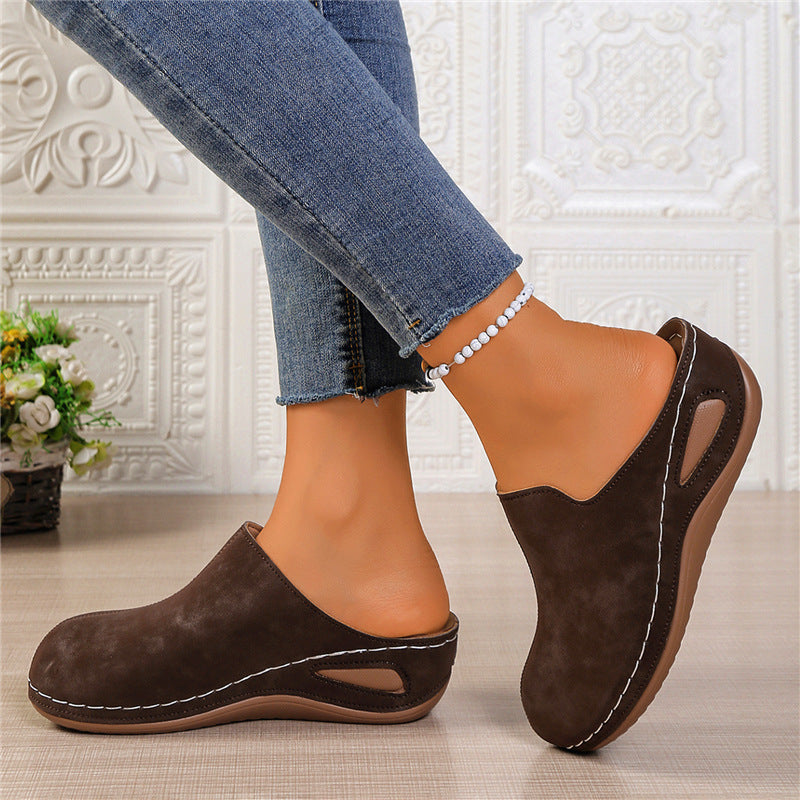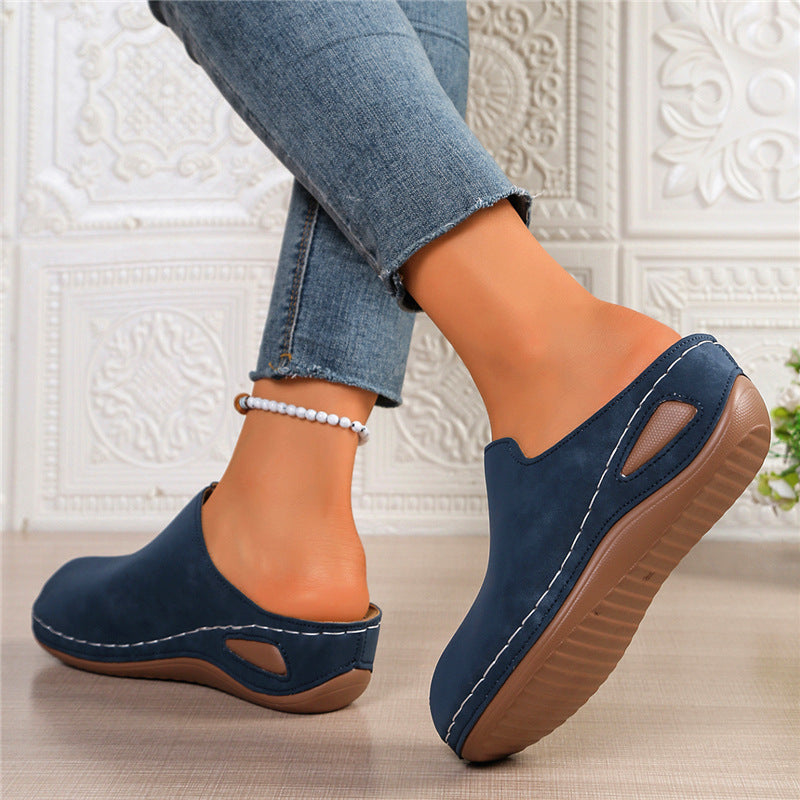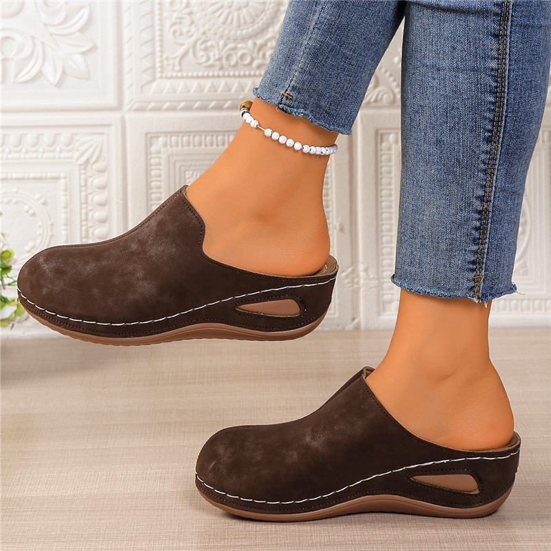 Slope And Round Head Slippers Women's Large Code In The Autumn Of 2025 New Thick Soles Pedaled Half Slippers HZ0115