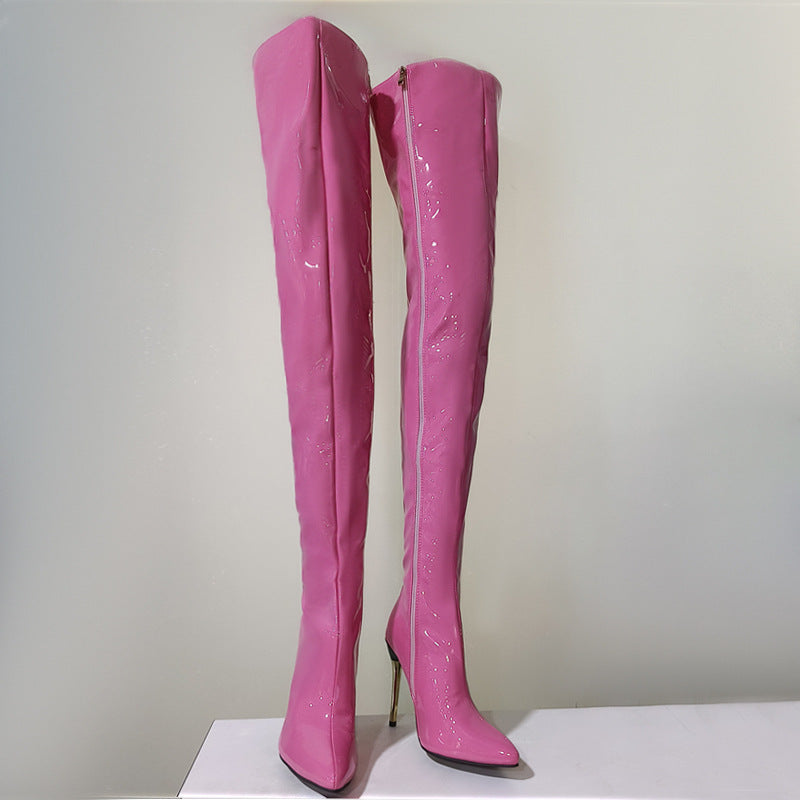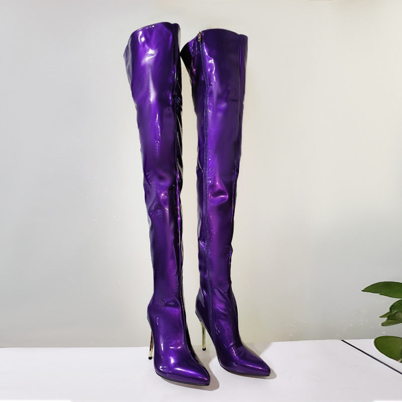 Xiyin Winter New Sexy Pointed Side Zipper Patent Skin Fine High Heel Knee Boots Large Size Leather Boots HZ0115